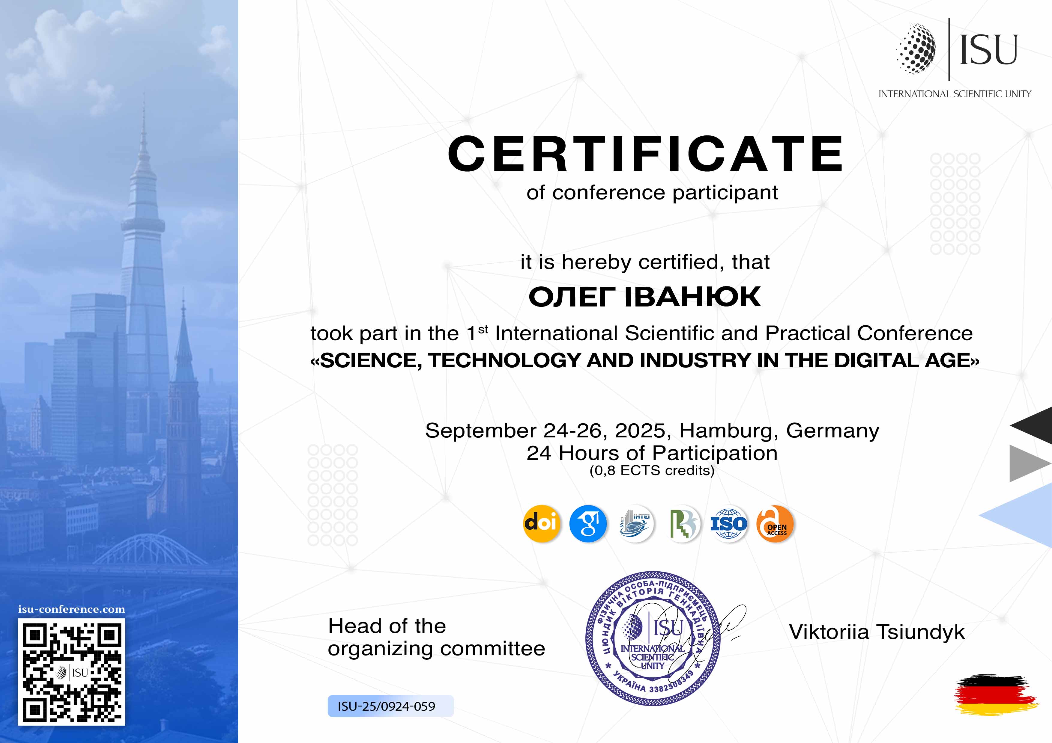 | 12194 | Science, Technology and Industry in the Digital Age | Одеса першої половини 19 ст. у візіях сучасників. | Hamburg, Germany |
