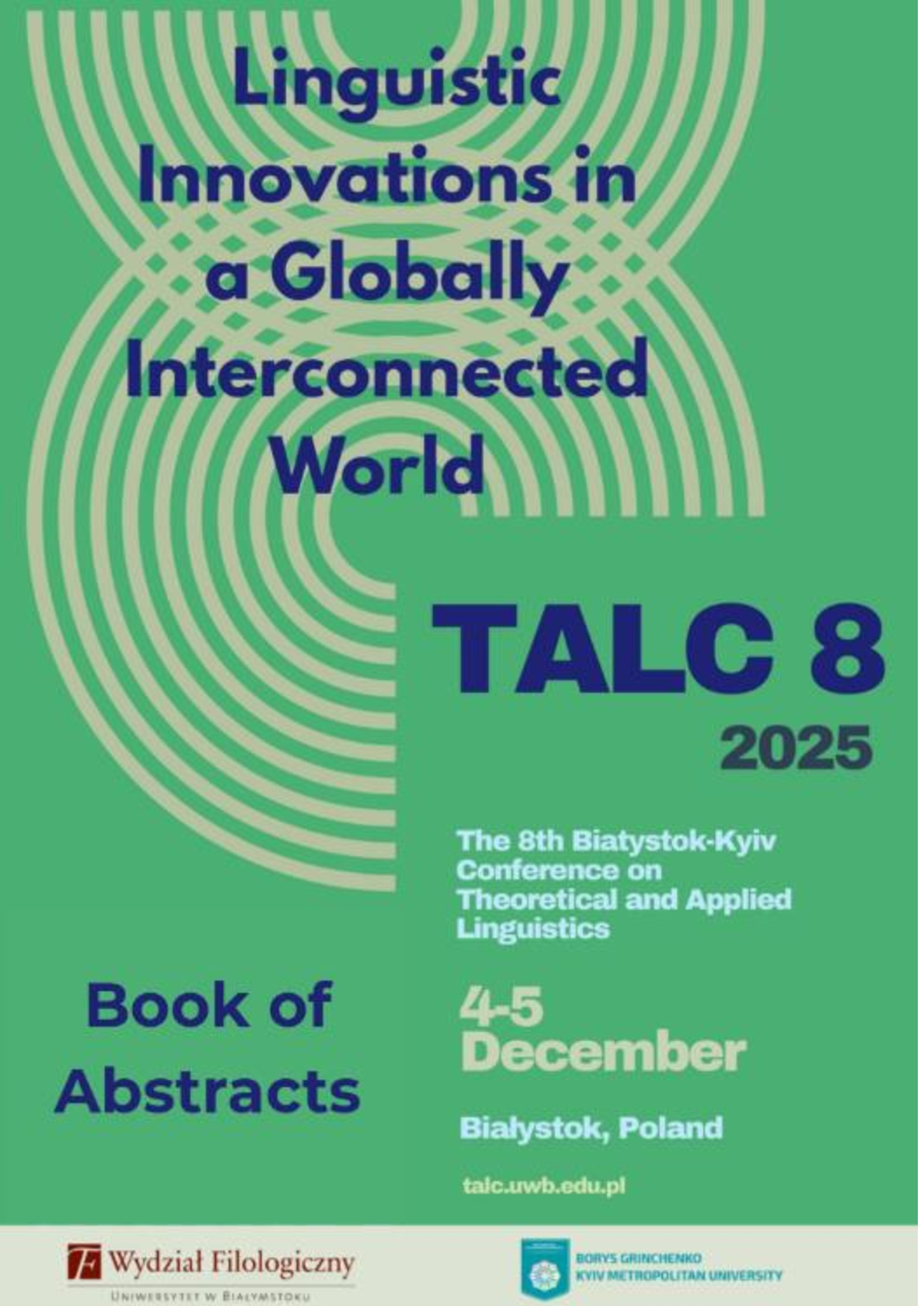| 12800 | Theoretical and Applied Linguistics Conference 8: Linguistic Innovations in a Globally Interconnected World | Constructing Grammar in the Mind | University of Białystok |