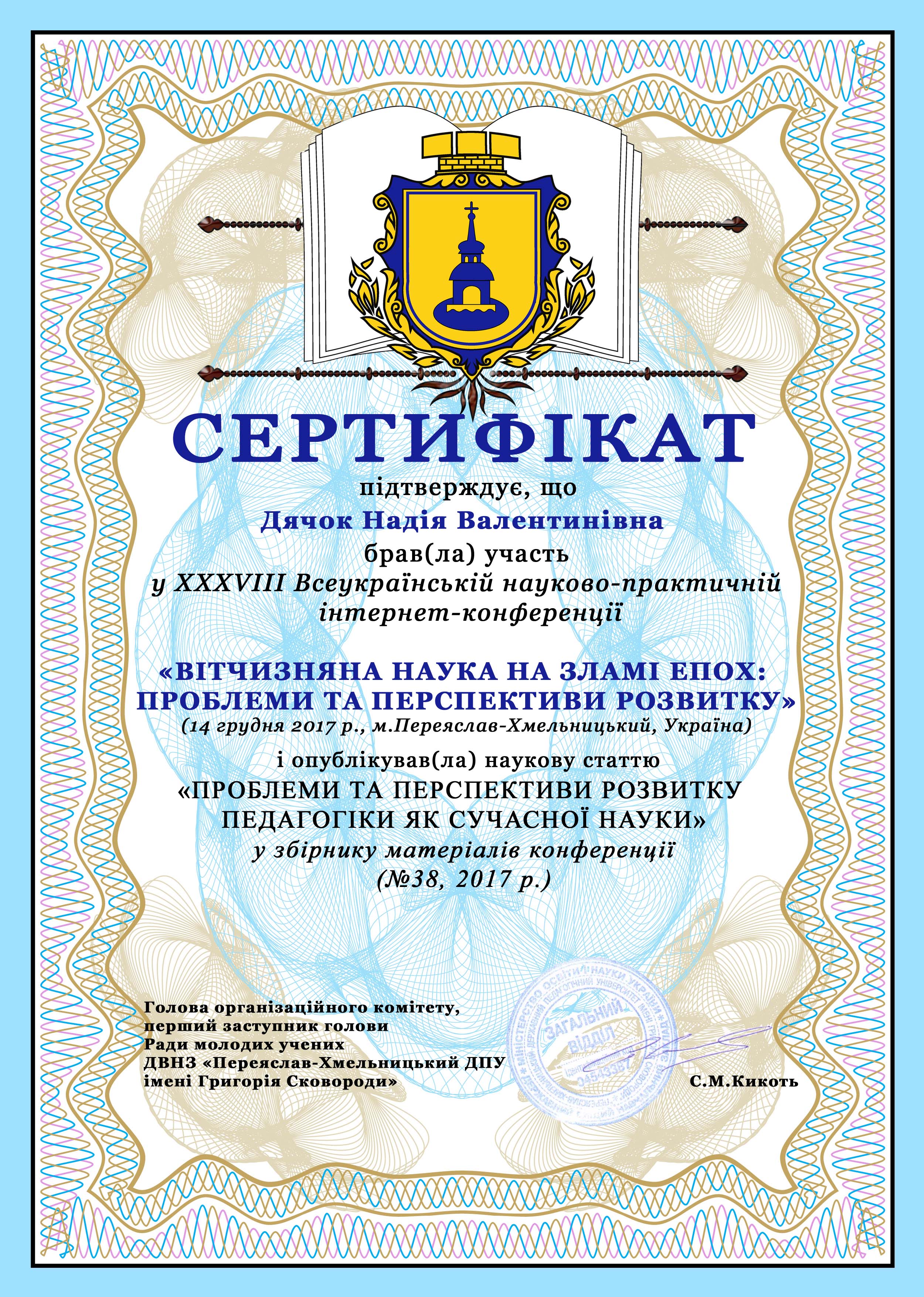 | 3490 | Вітчизняна наука на зламі епох: проблеми та перспективи розвитку | ПРОБЛЕМИ ТА ПЕРСПЕКТИВИ РОЗВИТКУ ПЕДАГОГІКИ ЯК СУЧАСНОЇ НАУКИ | м. Переяслав-Хмельницький |