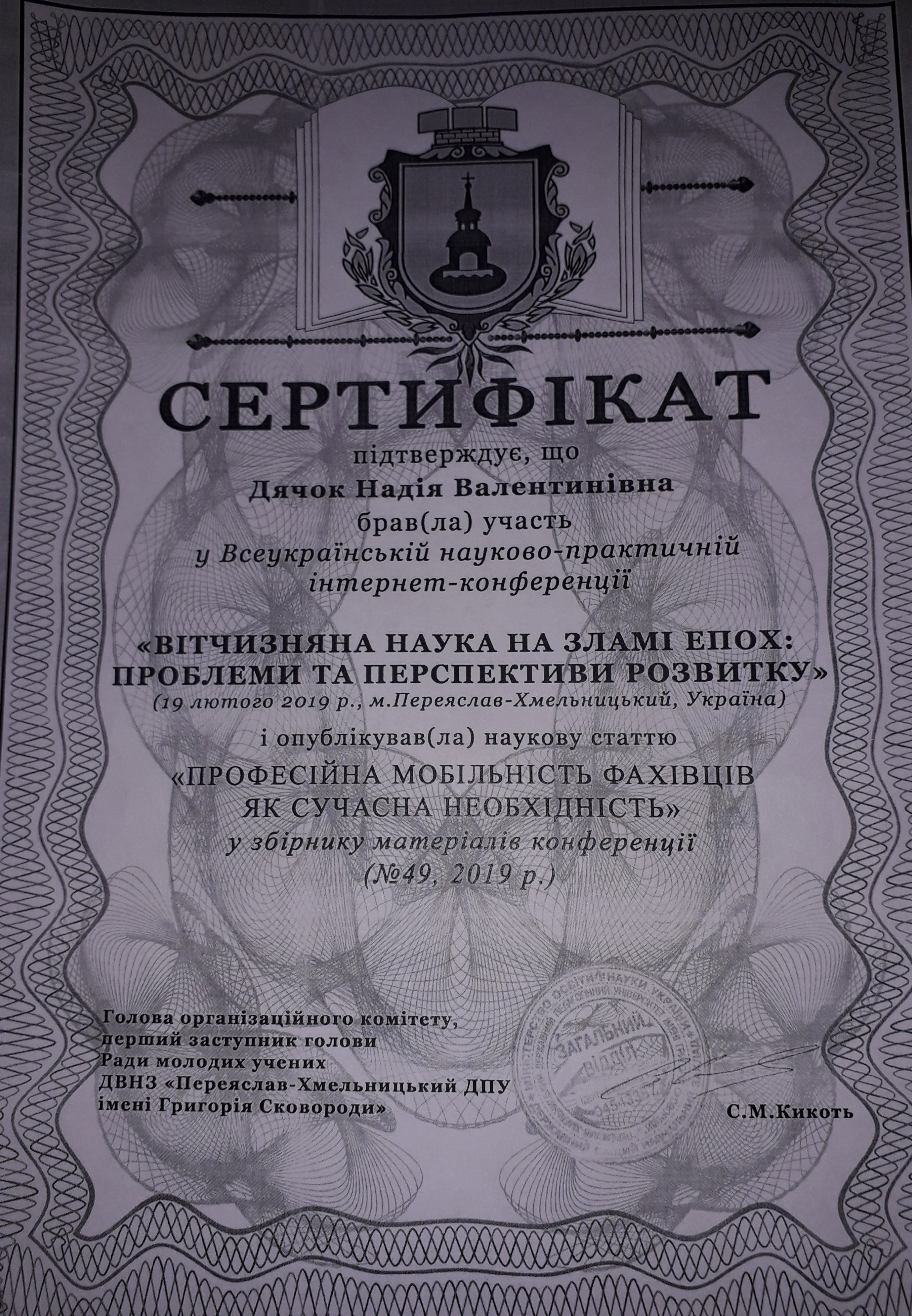 | 5158 | Вітчизняна наука на зламі епох:проблеми та перспективи розвитку | Професійна мобільність фахівців як сучасна необхідність | Переявлів-Хмельницький |