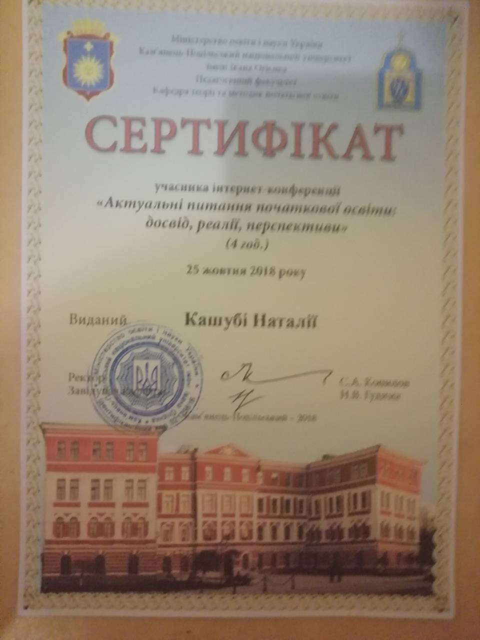 | 4317 | Українська та іноземні мови в початкових класах: актуальні проблеми й інноваційні технології навчання | Інноваційні підходи до навчання української мови в умовах НУШ | Кам'янець-Подільський |