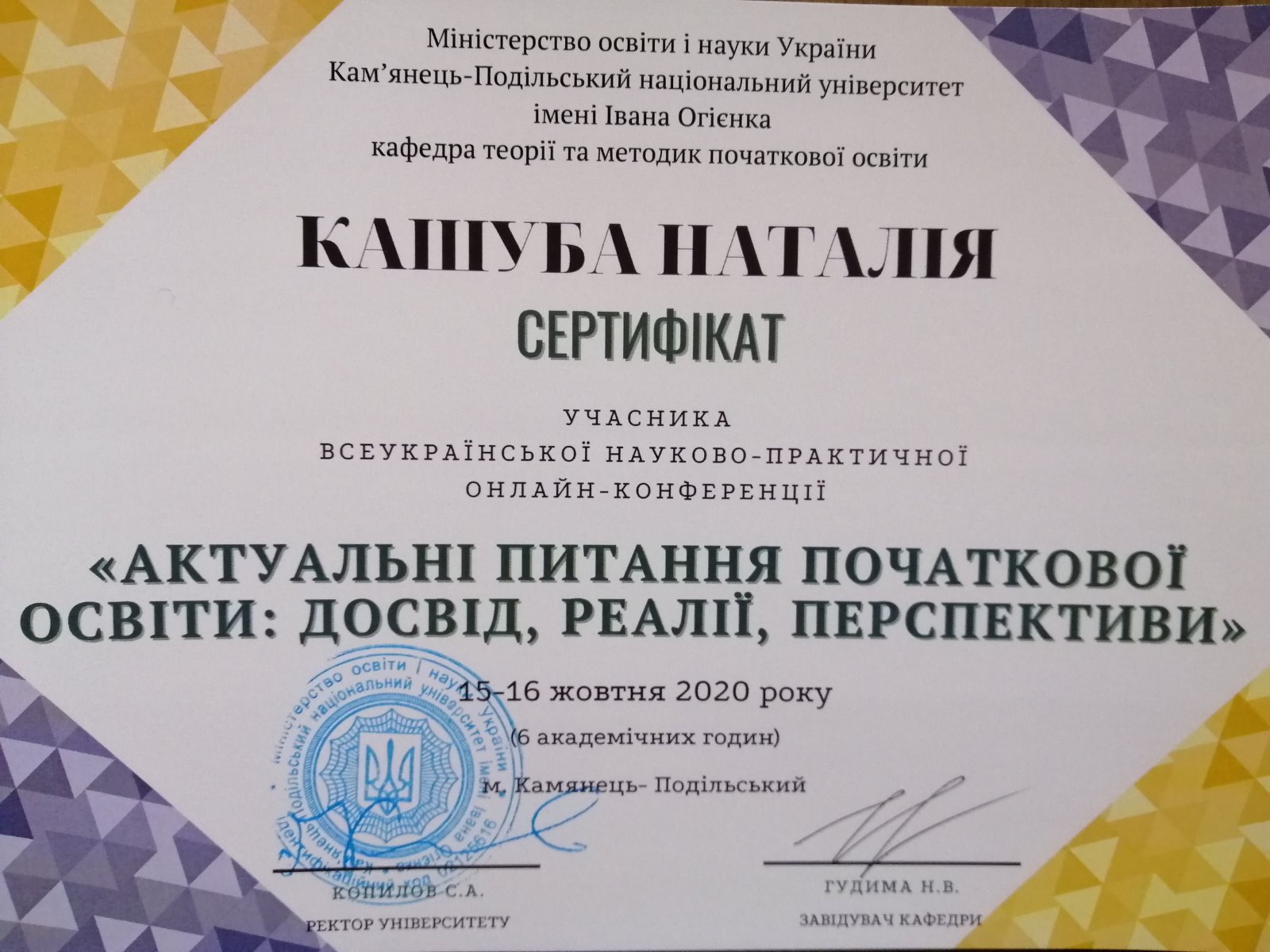 | 5545 | Актуальні питання початкової освіти:досвід, реалії, перспективи | Інтерактивний підхід при вивченні української мови в НУШ | Кам'янець-Подільський |