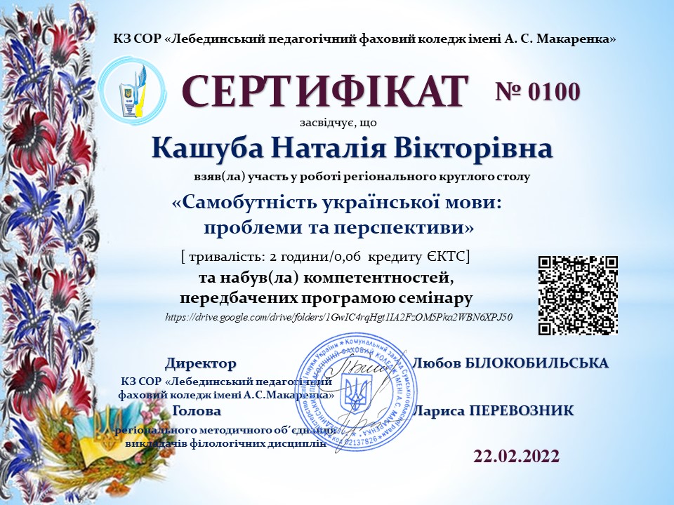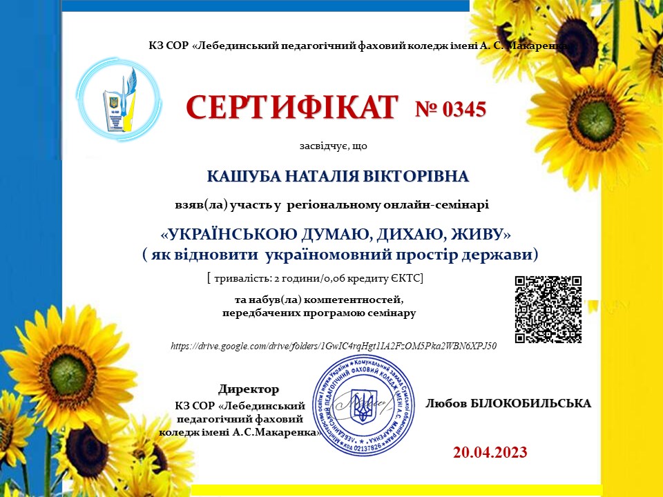 | 9178 | Регіональний онлайн-семінар | Українська мова- показник української нації | Лебедин |