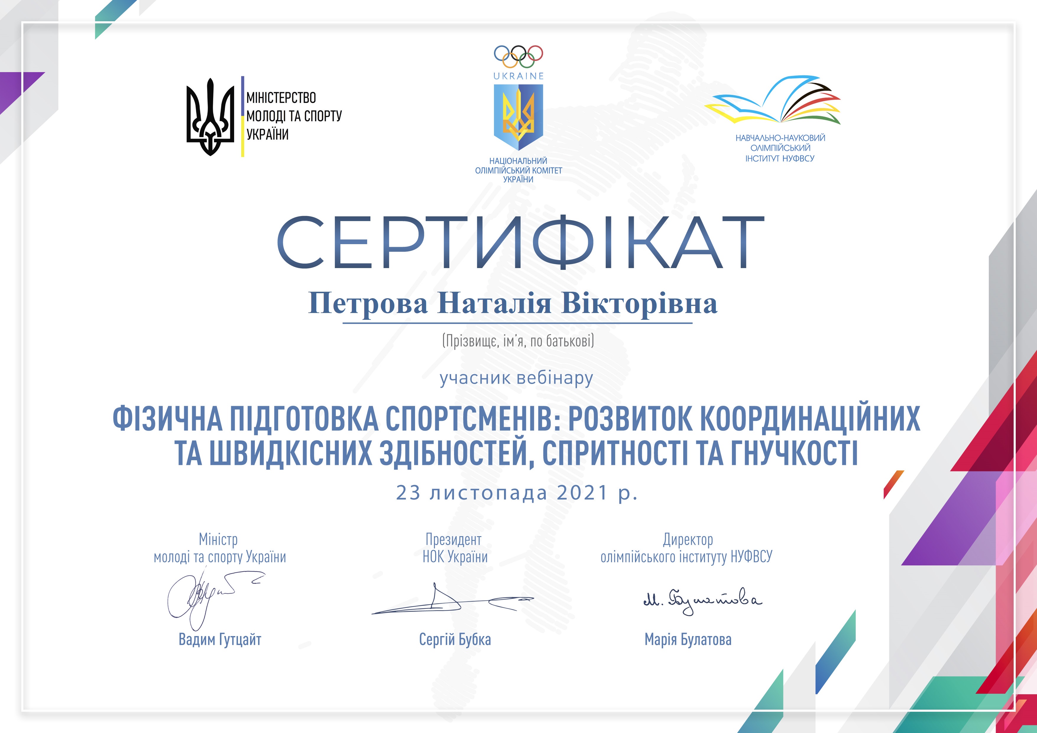| 7399 | 18-конференція НОК України | «Фізична підготовка спортсменів: розвиток координаційних та швидкісних здібностей, спритності та гнучкості.». | Онлайн |