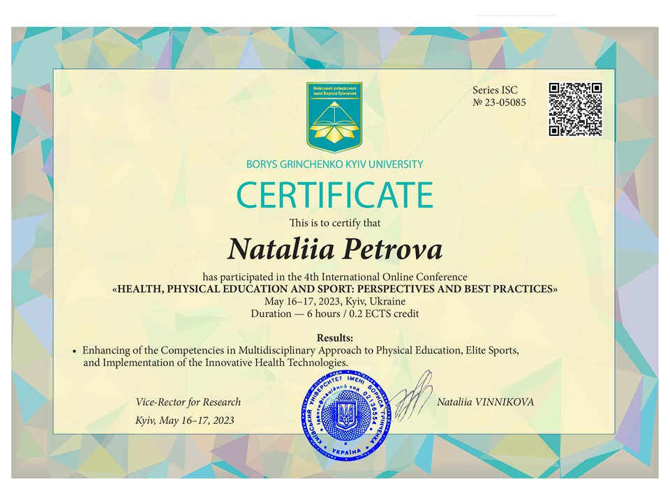 | 5354 | 7 Всеукраінська наукова конференція "Фізичне виховання, спорт та здоров,я людини | Анохінські читання | Університет імені Бориса Грінченка |