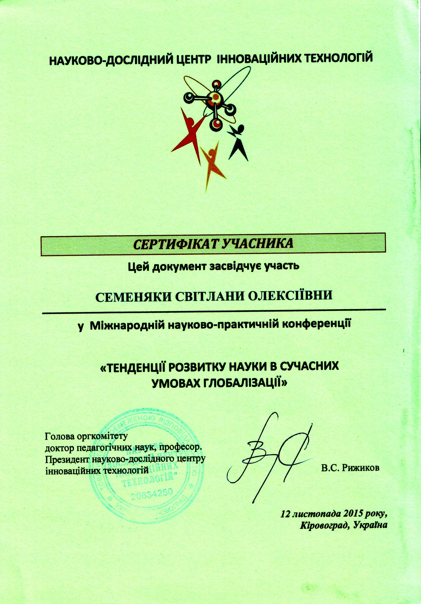 | 1015 | Тенденції розвитку науки в сучасних умовах глобалізації | Математизація суспільно-гуманітарних спеціальностей | Кіровоград, Україна |