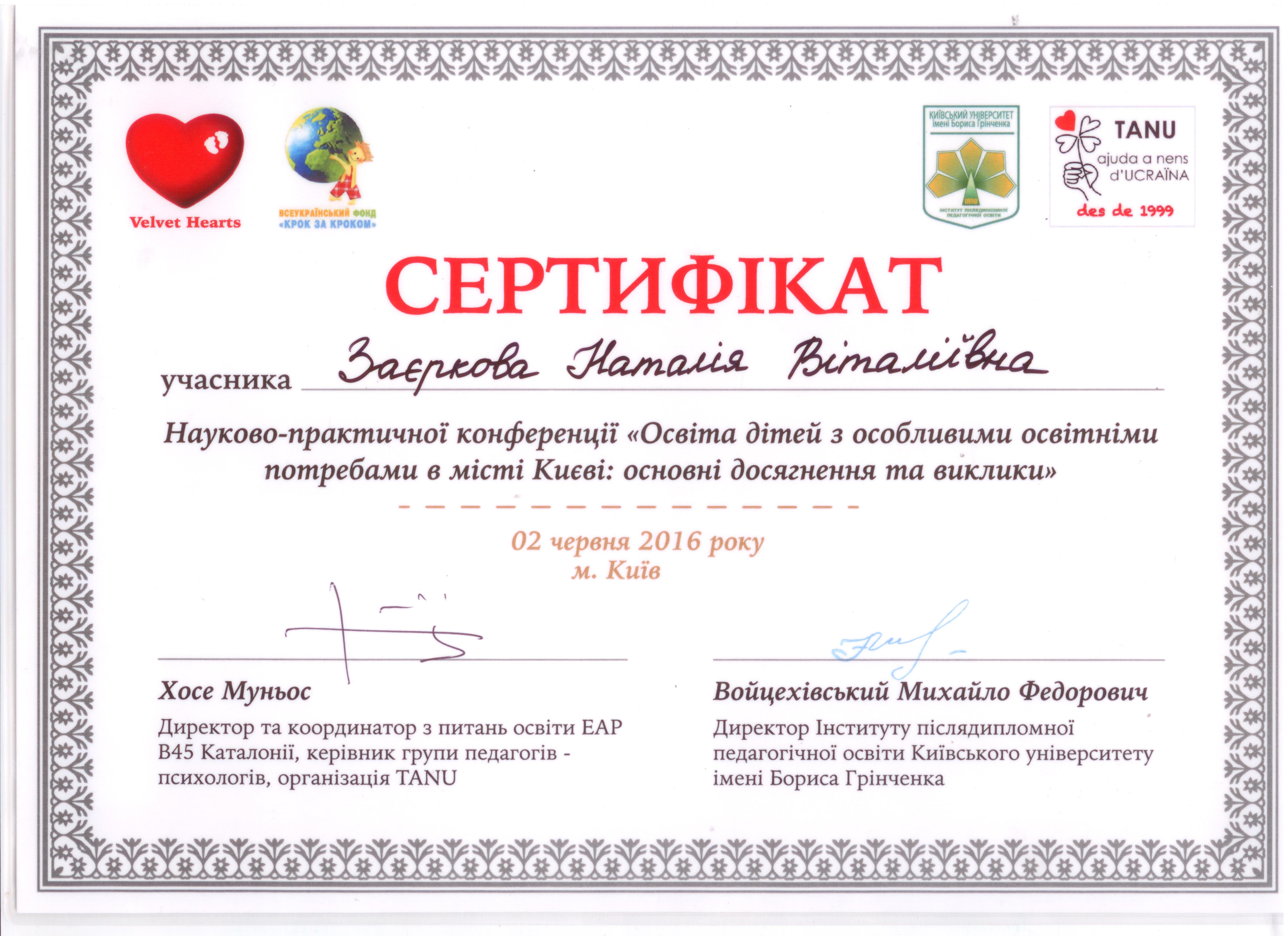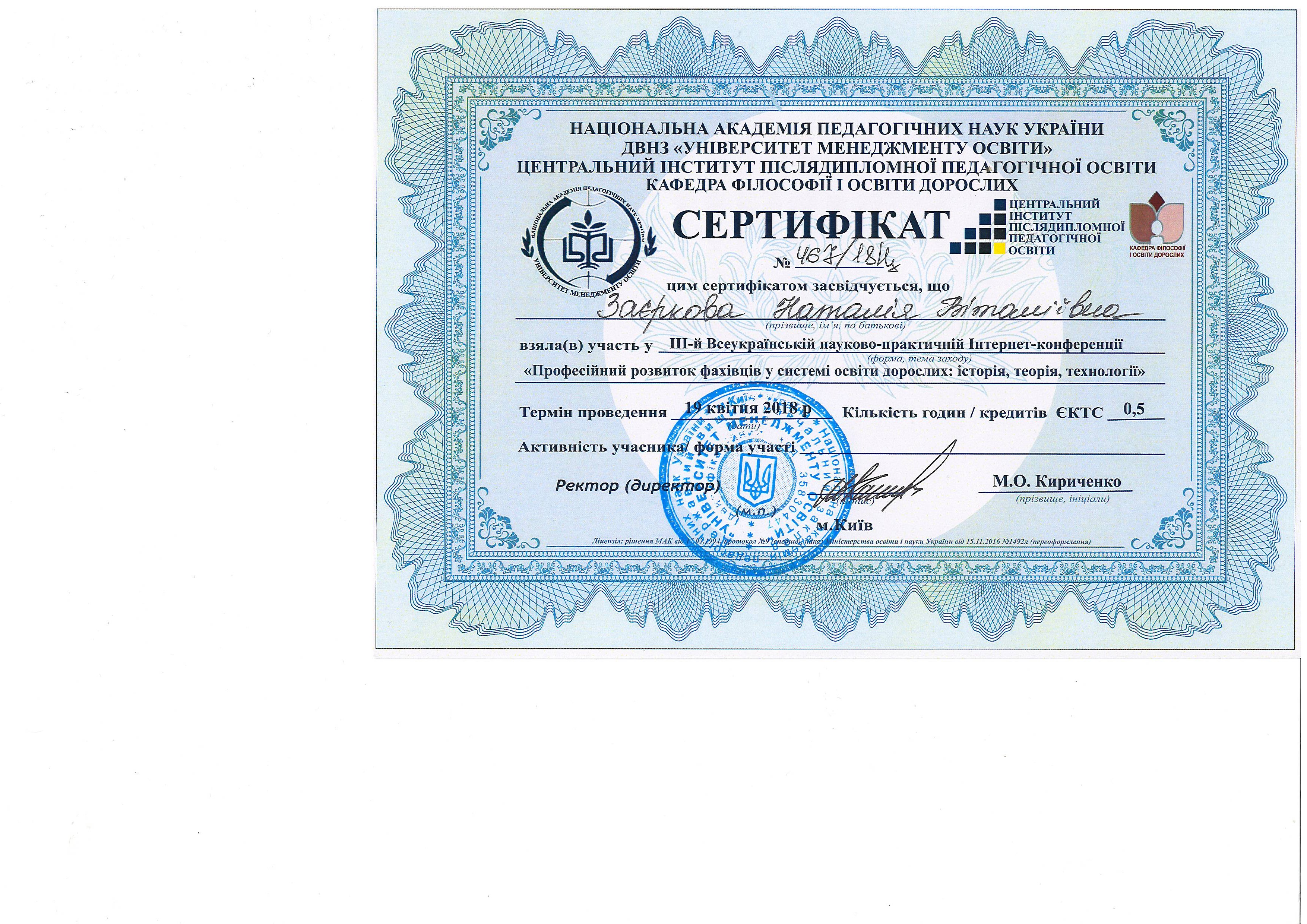 | 747 | International Step by Step Association | Міжнародне стажування | 19.03 - 22.03.2024 | Фізична | Liana Ghent, Executive Director | Учасник програми | ED Certificate-Nataliia Zaierkova (1).pdf |