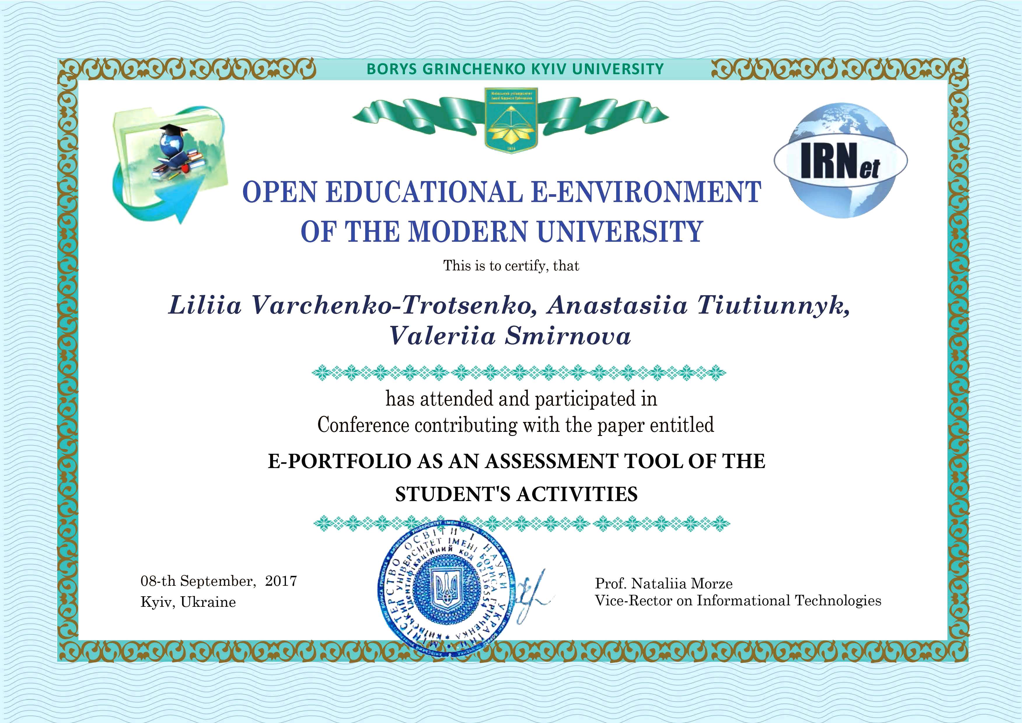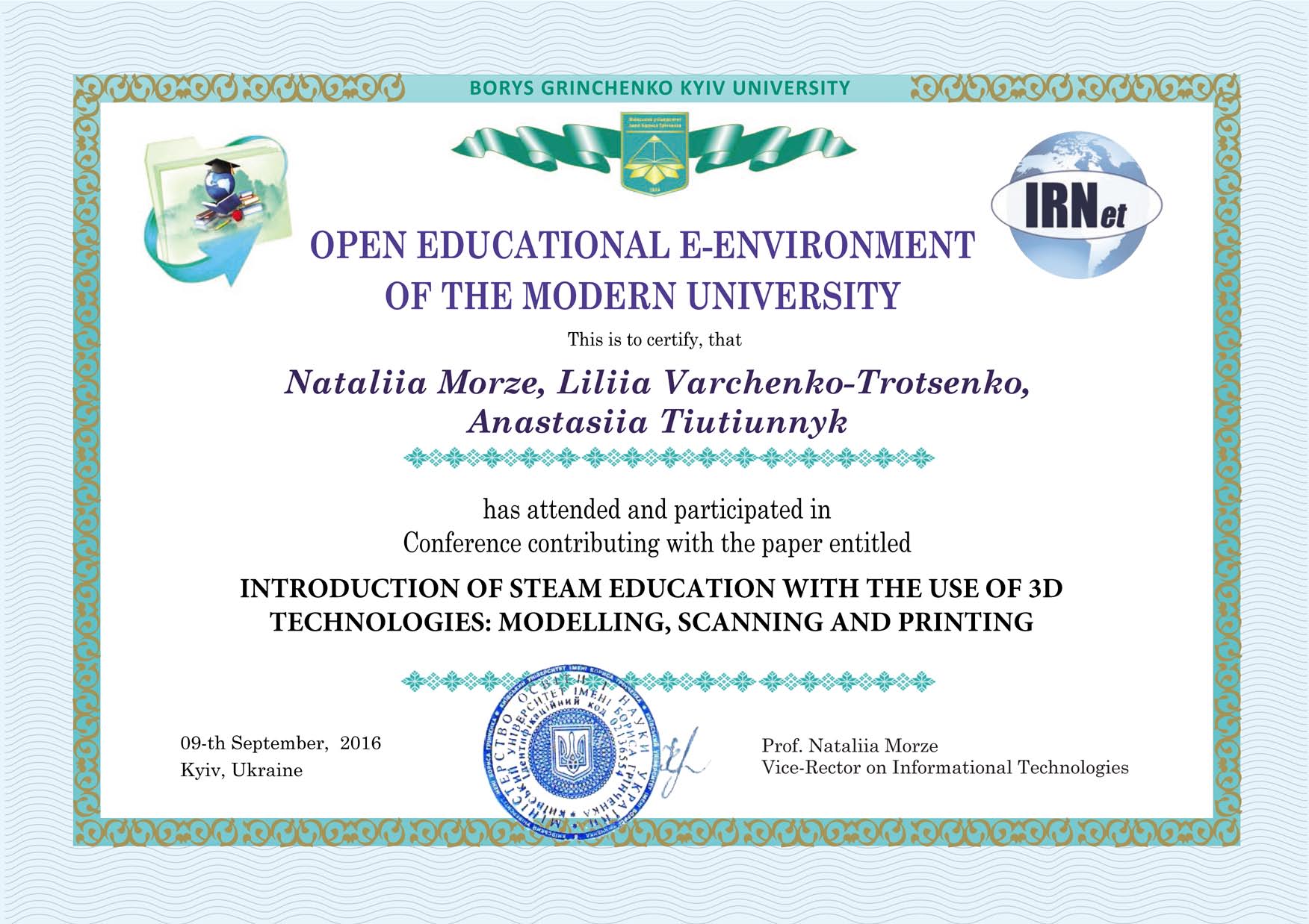| 695 | Відкрите освітнє е-середовище сучасного університету | Міжнародна науково-практична конференція | Київський університет імені Бориса Грінченка | 09.09.2016 00:00 | 10 |