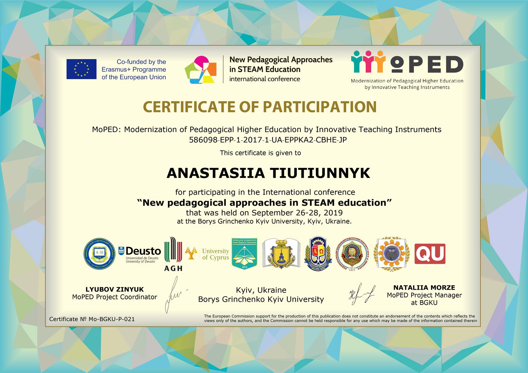 | 44 | Еразмус К2 | 586098-EPP-1-2017-1-UA-EPPKA2-CBHE-JP | Європейська Комісія | «Модернізація педагогічної вищої освіти з використання інноваційних інструментів викладання» (MoPED) | 1.10.2017-14.04.2021 р. | Учасник проекту |